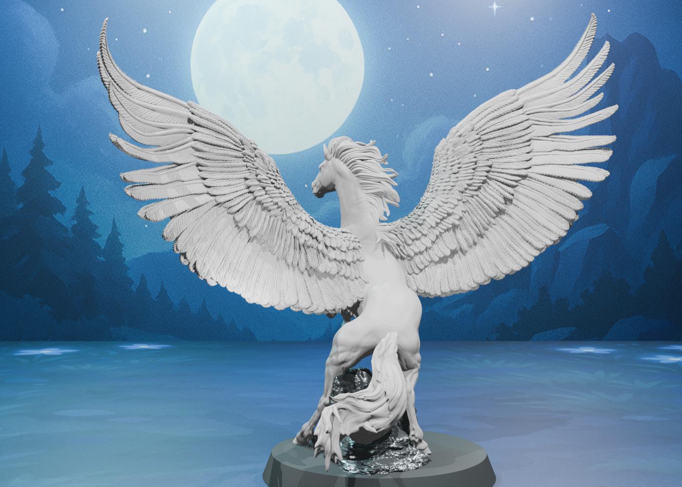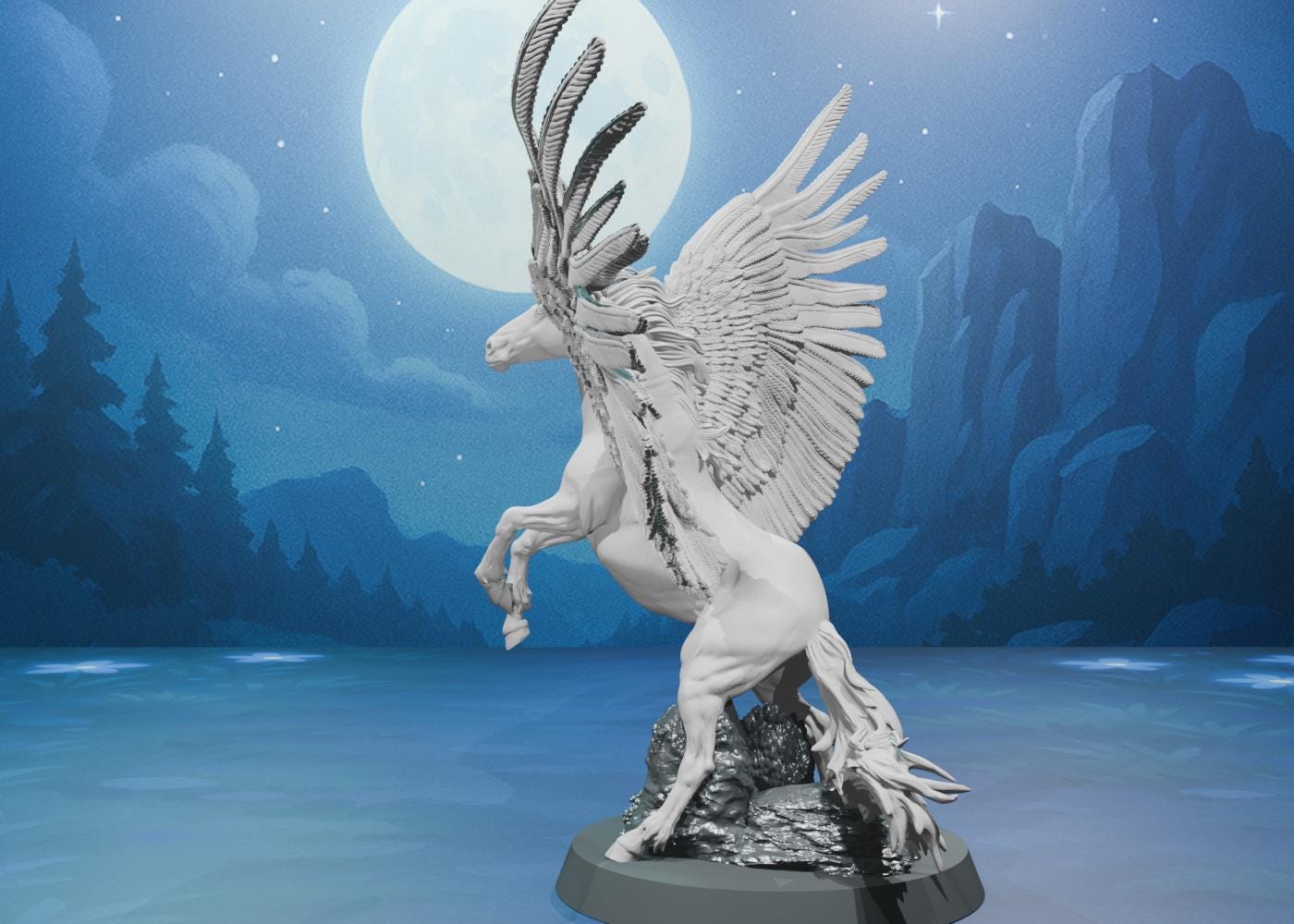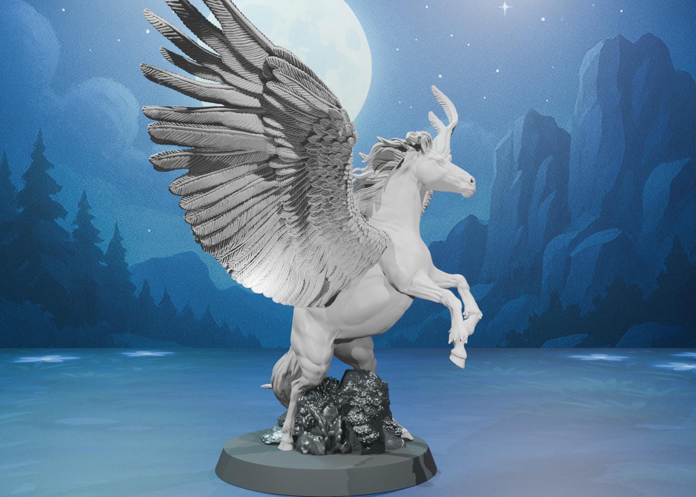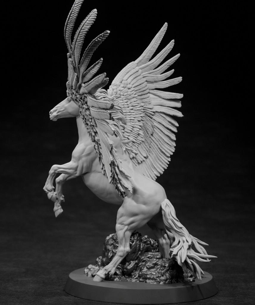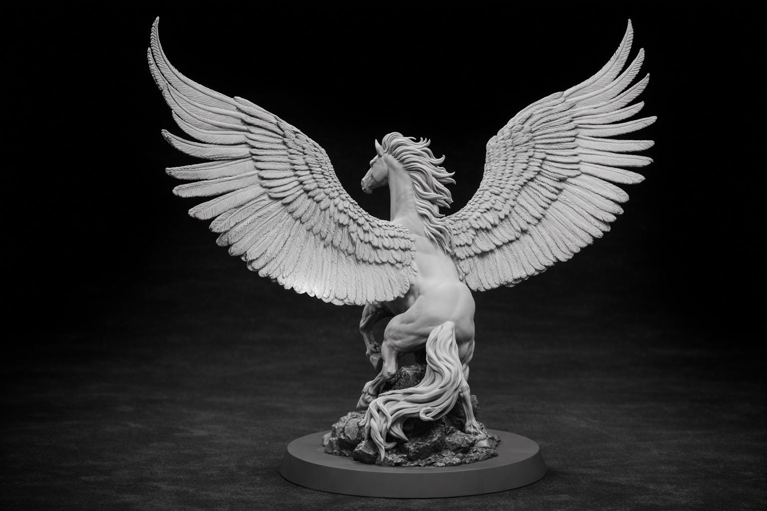 A beautifully detailed Pegasus miniature, perfect for fantasy tabletop RPGs, skirmish games, and wargaming. This elegant winged horse is printed in high-quality resin, capturing every feather and muscle detail with precision.