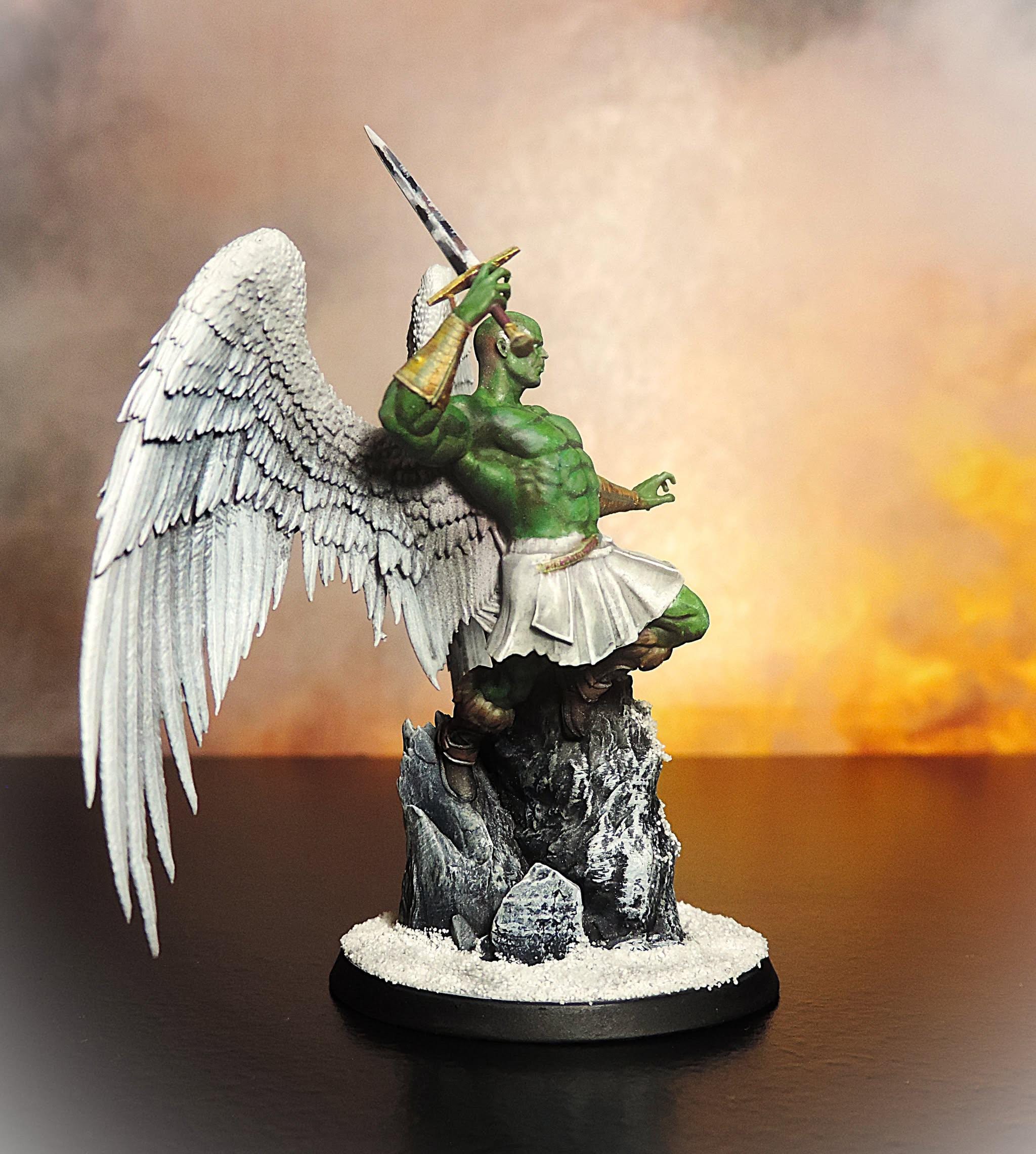 This is a high-quality 3D printed miniature of a celestial warrior – perfect for fantasy tabletop games and dioramas. Standing tall with majestic wings and a divine blade, this angelic guardian makes a powerful enemy or ally on your battlefield.