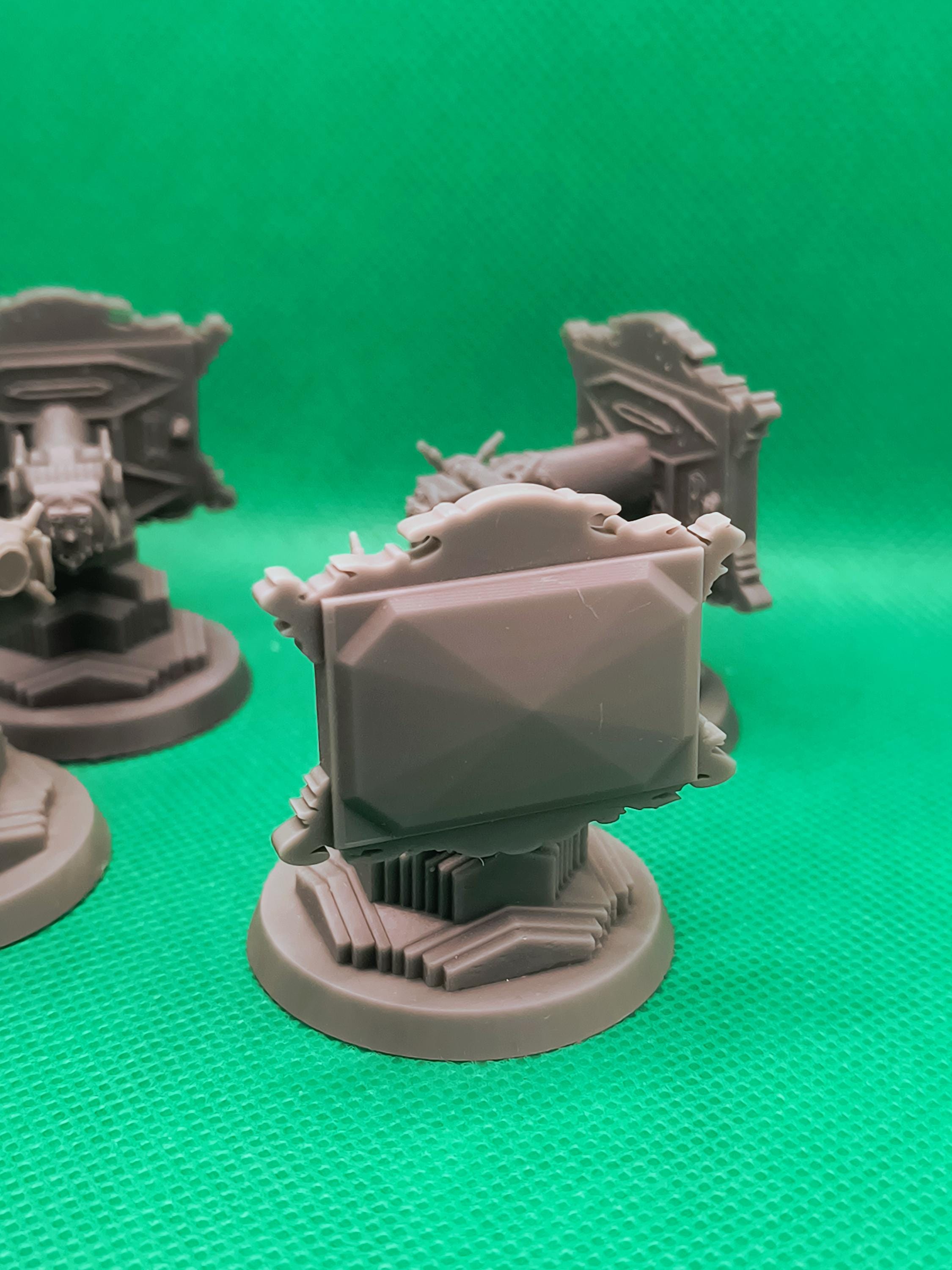 Each model is mounted on a 40mm round base and printed in high-detail resin to ensure sharp edges and crisp surface details. Perfect as magical artifacts, arcane devices, defensive structures, or thematic battlefield objectives for dwarf armies.